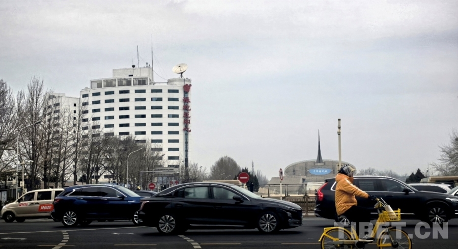 在北京西長安街南側(cè)遠(yuǎn)眺2026年全國兩會新聞中心所在地梅地亞中心 攝影:劉莉
