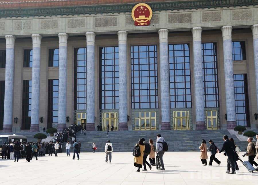 3月3日下午,本網(wǎng)記者在人民大會堂前,準備參加全國政協(xié)十四屆四次會議新聞發(fā)布會。攝影:劉莉