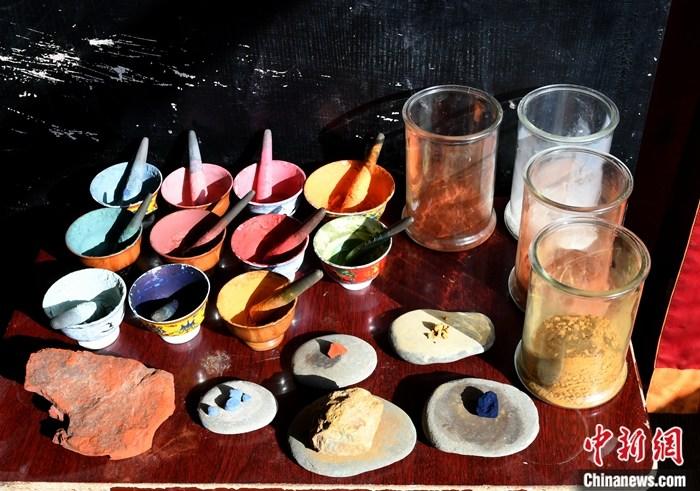 圖為繪制唐卡的顏料。中新社記者 安源 攝
