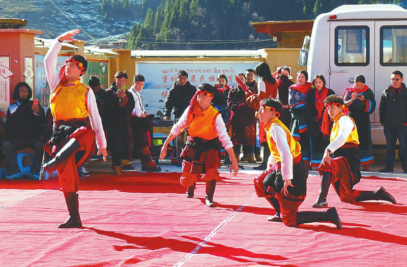 歡快的節(jié)奏,嘹亮的歌聲,表演者飛舞著的白色、紅色、黃色長袖……1月17日中午,四川省阿壩藏族羌族自治州壤塘縣“脫貧春晚”在上杜柯鄉(xiāng)吉拉村首秀。當?shù)?00余名群眾觀看表演,有的趴在圍墻上專注地錄視頻,有的站在凳子上拍照,還有小朋友隨著音樂在開闊處起舞。