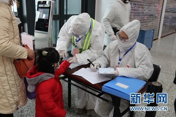 醫(yī)護(hù)人員為進(jìn)出港旅客測(cè)溫,持續(xù)做好疫情防控。