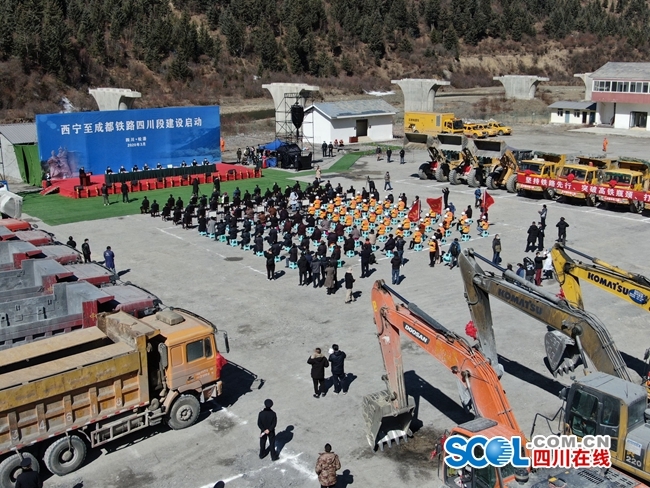 3月5日,西寧至成都鐵路四川段啟動建設(shè),在積雪覆蓋的川西高原,當(dāng)?shù)厝罕姶┥厦褡宸b,載歌載舞,表達喜悅和歡欣。