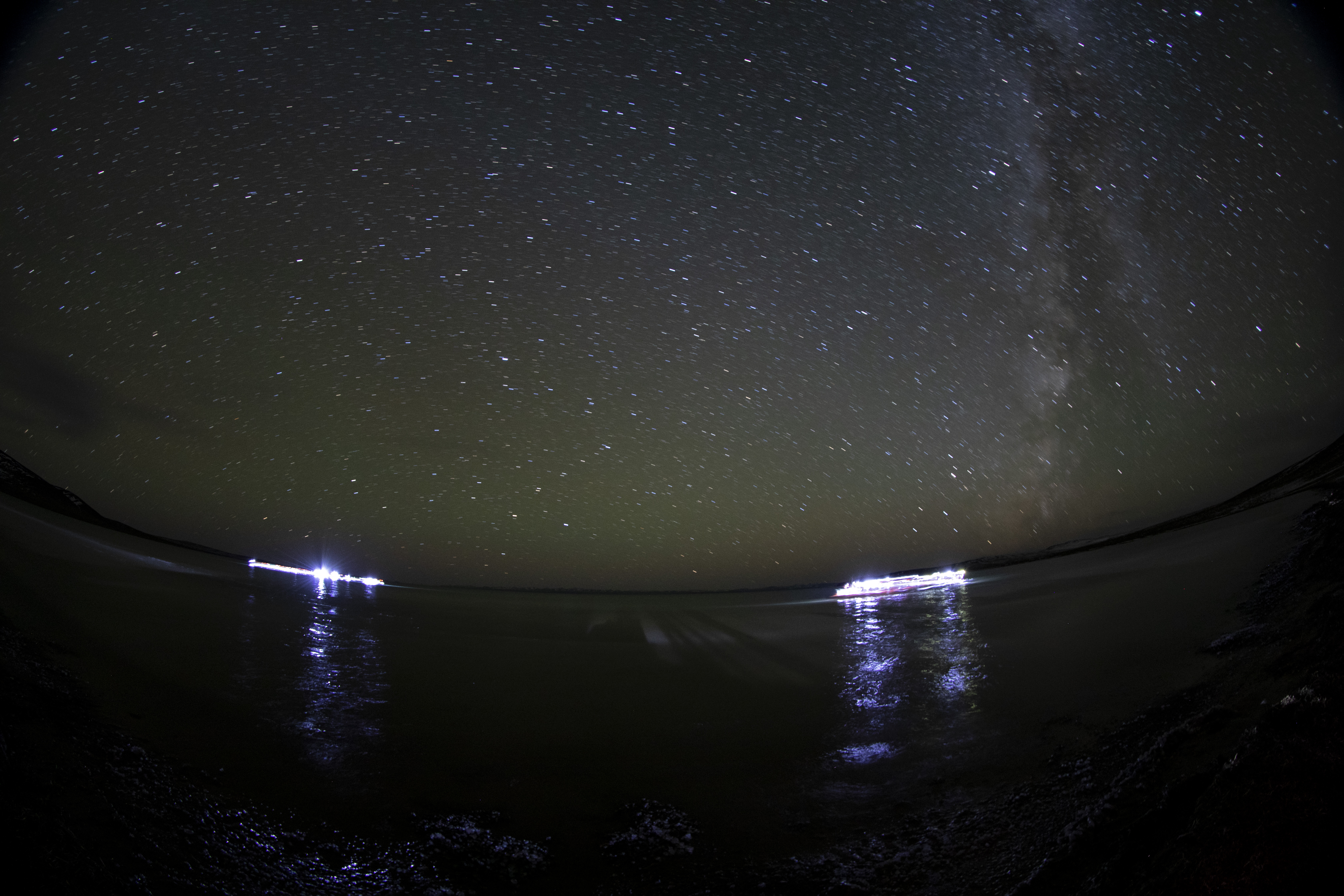 可可西里測(cè)湖隊(duì)員在夜色中考察歸來(lái)。第二次青藏科考湖泊演變及氣候變化響應(yīng)科考分隊(duì)供圖