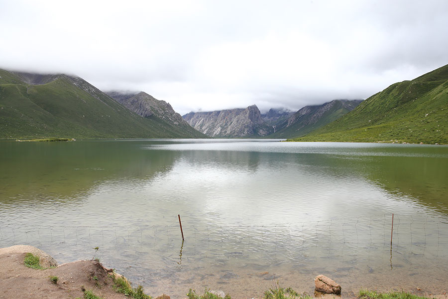 站在年保玉則的湖畔,湖面幽藍(lán)深邃像是一面鏡子,時(shí)間仿佛在這一刻都停止了,寧?kù)o和心靜。望向遠(yuǎn)處,山峰疊巒直插縹緲的白云中;看向身旁,五顏六色的小花鋪滿了湖岸,牦牛低頭飲著湖水,成群的裸鯉游走在湖邊,這是生命的動(dòng)靜。