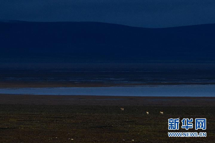 暮色漸濃,可可西里腹地的卓乃湖,空氣中透著寒意。一群群藏羚羊向湖畔山坳進發(fā),躲避寒風。