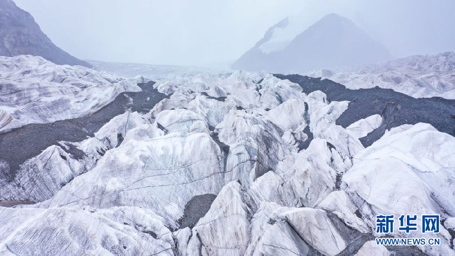 位于青海省玉樹藏族自治州的崗加曲巴冰川,坐落于長江源園區(qū)的各拉丹冬雪山東坡,從空中俯瞰,層疊的冰塔顯得尤為壯觀。