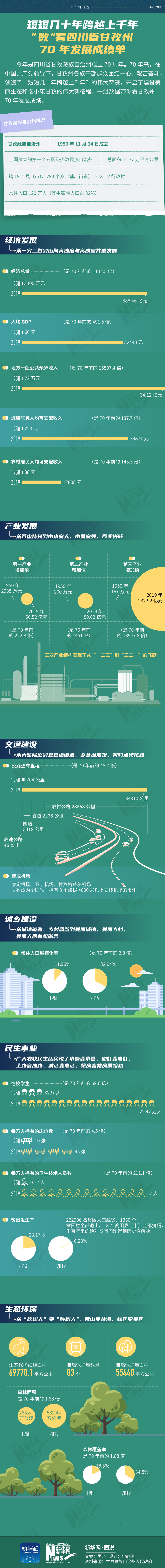 今年是四川省甘孜藏族自治州成立70周年。70年來(lái),在中國(guó)共產(chǎn)黨領(lǐng)導(dǎo)下,甘孜州各族干部群眾團(tuán)結(jié)一心、艱苦奮斗,創(chuàng)造了“短短幾十年跨越上千年”的偉大奇跡,開啟了建設(shè)美麗生態(tài)和諧小康甘孜的偉大新征程。一組數(shù)據(jù)帶你看甘孜州70年發(fā)展成績(jī)。