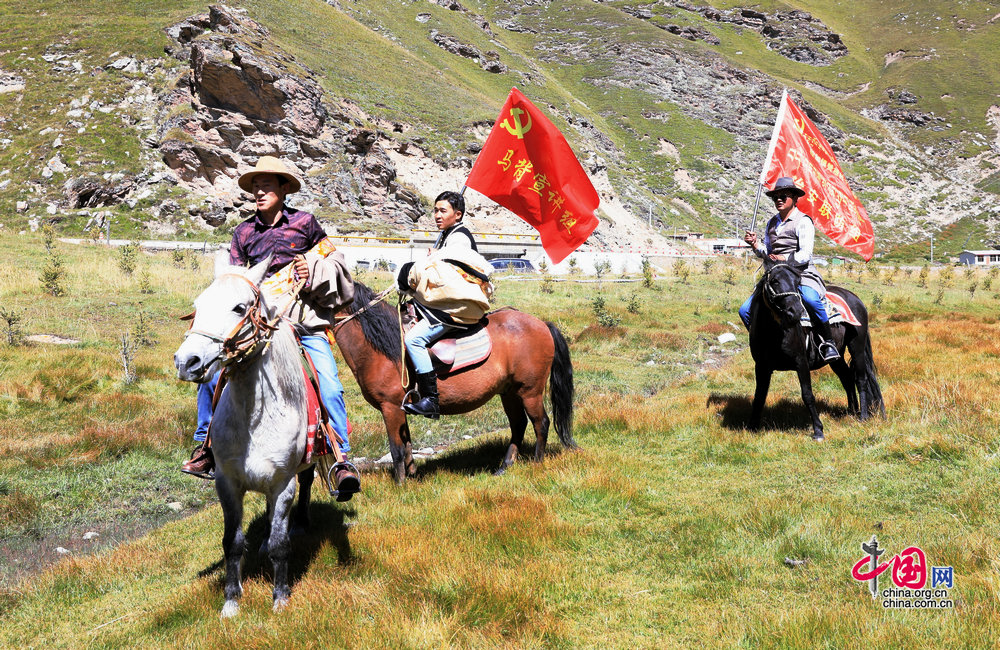 “馬背宣講隊”讓黨的方針政策進(jìn)入尋常百姓家。攝影:孫磊