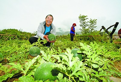 搬遷后的德吉村村民種起了西瓜。王偉才 攝
