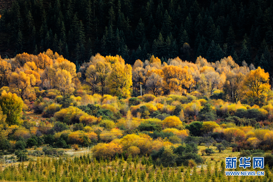 郁郁蔥蔥的樹木已經(jīng)由綠變黃。新華網(wǎng) 蘇金元 攝