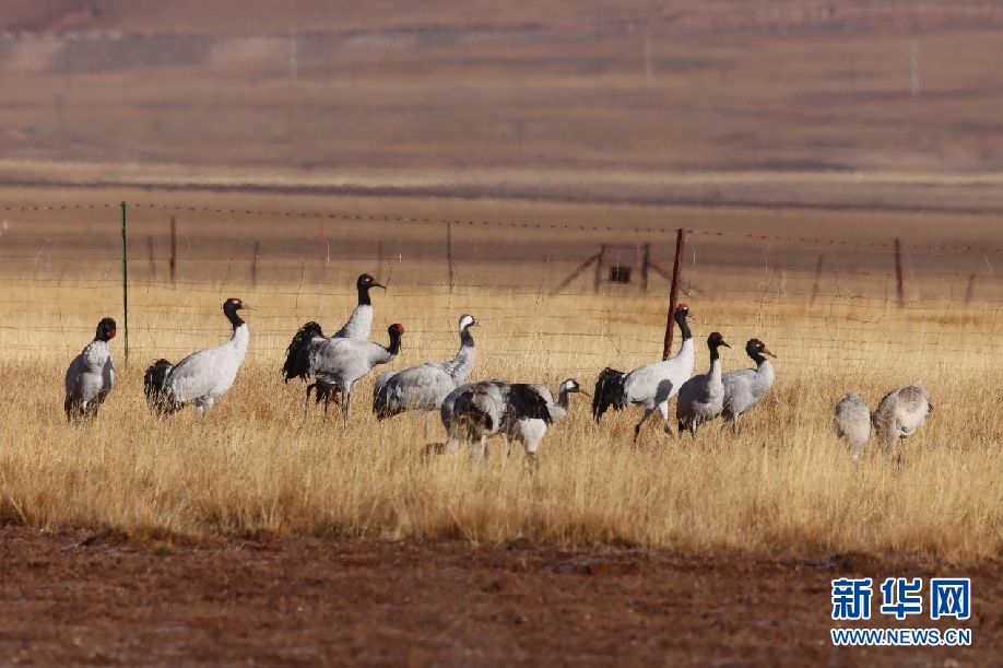黑頸鶴。新華網(wǎng)發(fā)