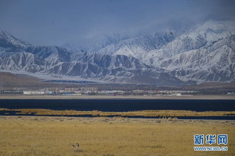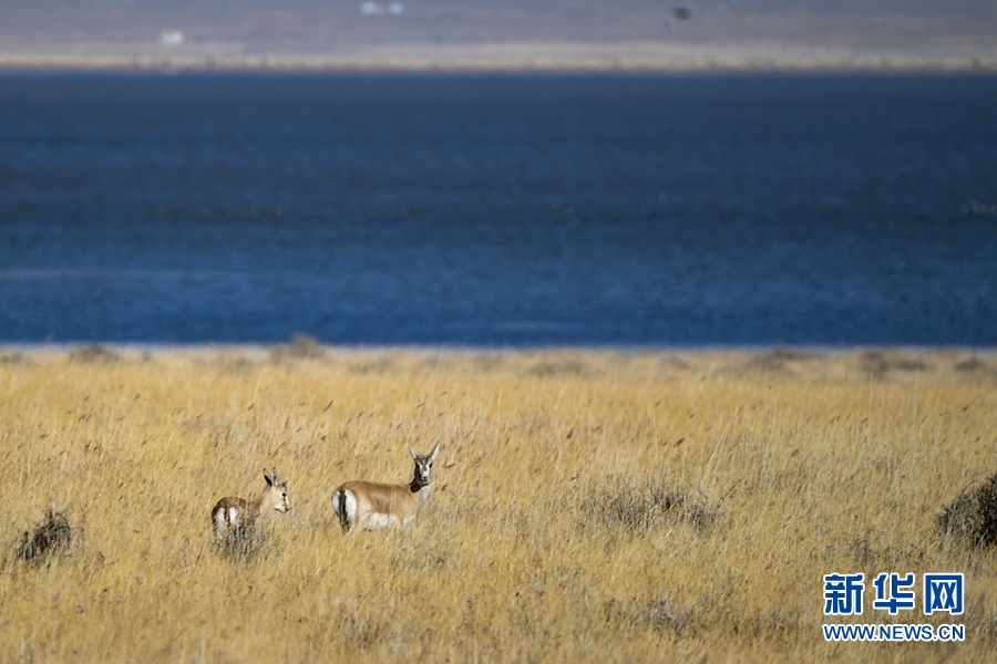 在都蘭湖國家濕地公園內(nèi)拍攝到的鵝喉羚。(11月21日攝)新華網(wǎng) 潘彬彬 攝