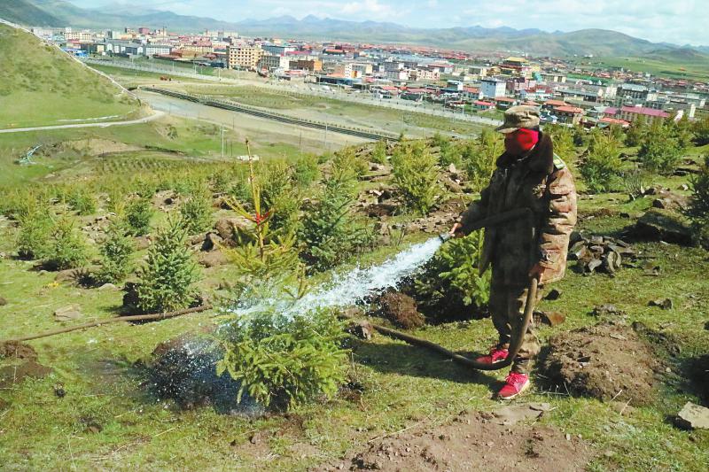色達縣生態(tài)脆弱區(qū)治理后期管護。(色達縣林草局供圖)