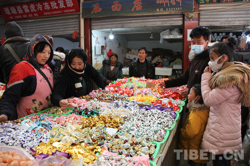 中國西藏網(wǎng)訊 隨著春節(jié)和藏歷新年的臨近,1月26日,四川省甘孜藏族自治州理塘縣城中菜市場一派繁忙景象,廣大藏族群眾正忙著采購年貨。(中國西藏網(wǎng) 通訊員/葉強平)