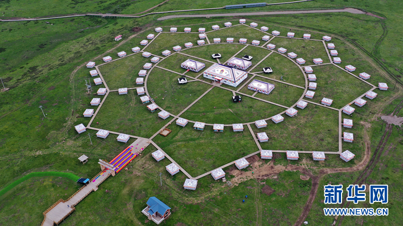 這是2020年6月20日拍攝的甘南藏族自治州碌曲縣尕海鎮(zhèn)尕秀村帳篷城景區(qū)(無(wú)人機(jī)照片)。新華社記者 陳斌 攝