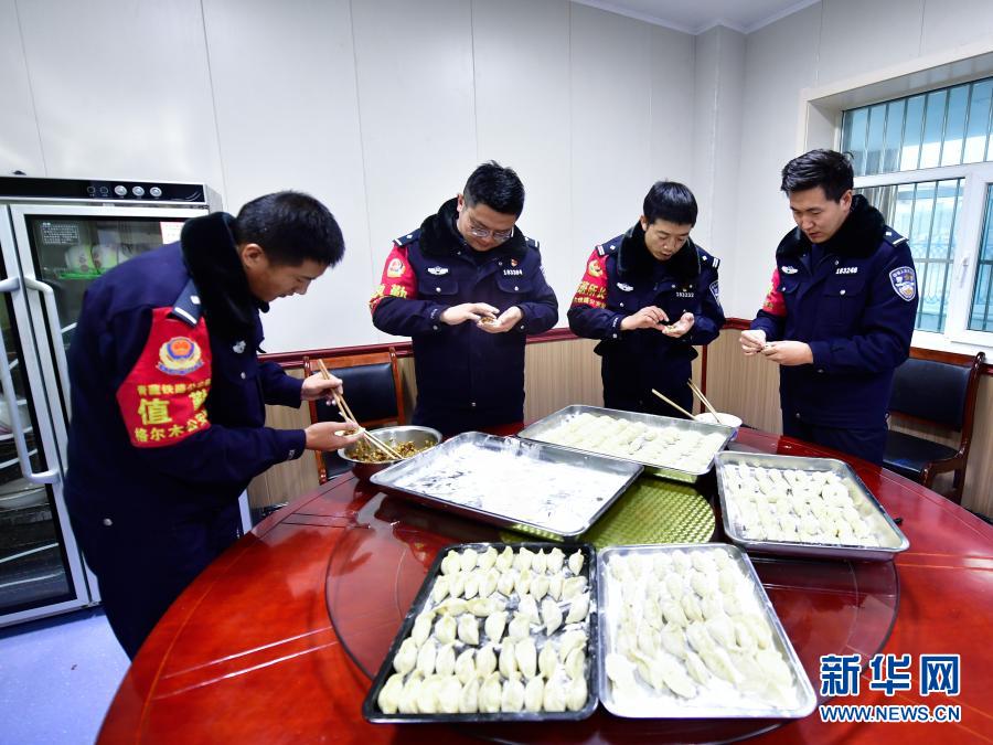 “我們的位置太偏遠(yuǎn),食品物資都要靠火車運(yùn)過(guò)來(lái),每次運(yùn)來(lái)的數(shù)量有限,再加上大家工作都忙,平時(shí)沒空聚,這不過(guò)小年了嘛,大家就湊起來(lái),包餃子,一起過(guò)個(gè)年。”民警田長(zhǎng)松邊包餃子邊說(shuō)。
