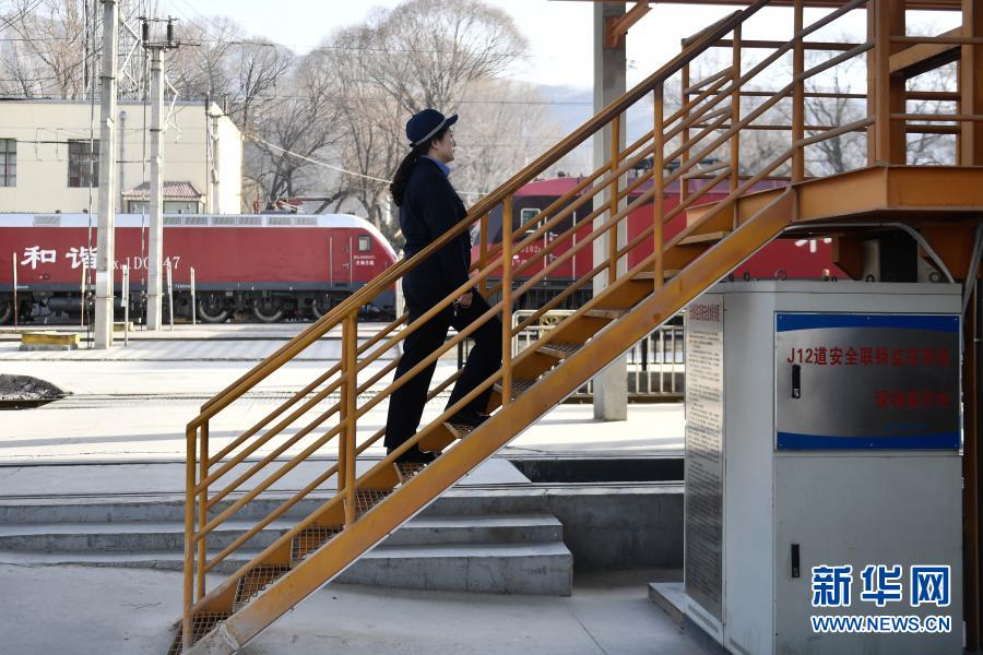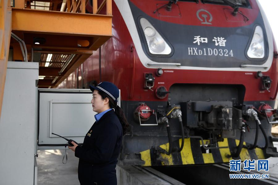 2月24日,在青藏鐵路公司西寧機務(wù)段整備車間,隔離開關(guān)班組成員賀霞在工作中。新華社記者 張曼怡 攝