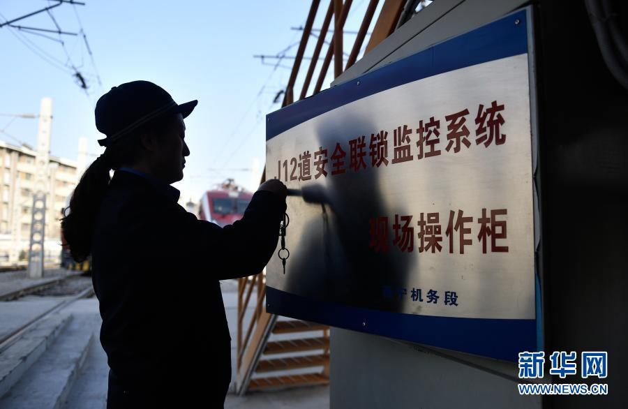 2月24日,在青藏鐵路公司西寧機務(wù)段整備車間,隔離開關(guān)班組成員李娟在工作中。新華社記者 張曼怡 攝