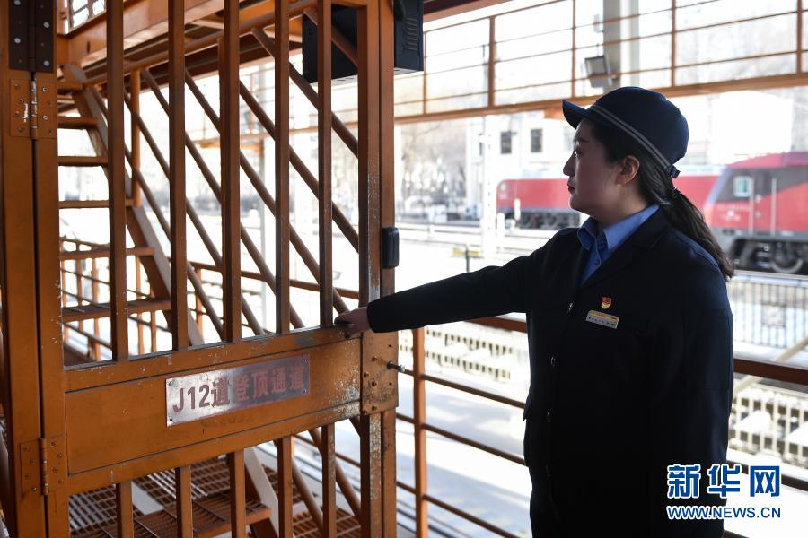 春運期間,青藏鐵路公司西寧機務(wù)段整備車間每天檢修的機車增至40輛左右,為了防止登頂檢修人員被接觸網(wǎng)所攜帶的25千伏高壓電傷害,由王麗、賀霞、馬正蘭、李娟四個人組成的“娘子軍”隔離開關(guān)班組擔負起保障登頂作業(yè)人員與設(shè)備使用安全的責任。春運期間,她們守在機車旁,檢查設(shè)備安全性能、叮囑登頂工作人員,一站就是一整天,用耐心與細心守護著春運機車安全?! ?/p>