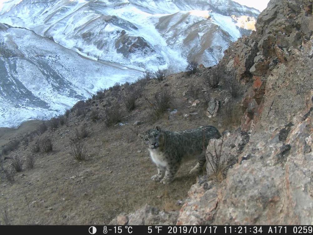 2019年1月17日,在祁連山國家公園青海片區(qū),紅外相機(jī)拍攝到的雪豹照片。