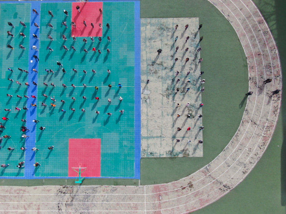 在青海省玉樹藏族自治州八一孤兒學(xué)校,學(xué)生們?cè)谶M(jìn)行課間活動(dòng)(2020年4月3日攝)。 新華社記者 張龍 攝