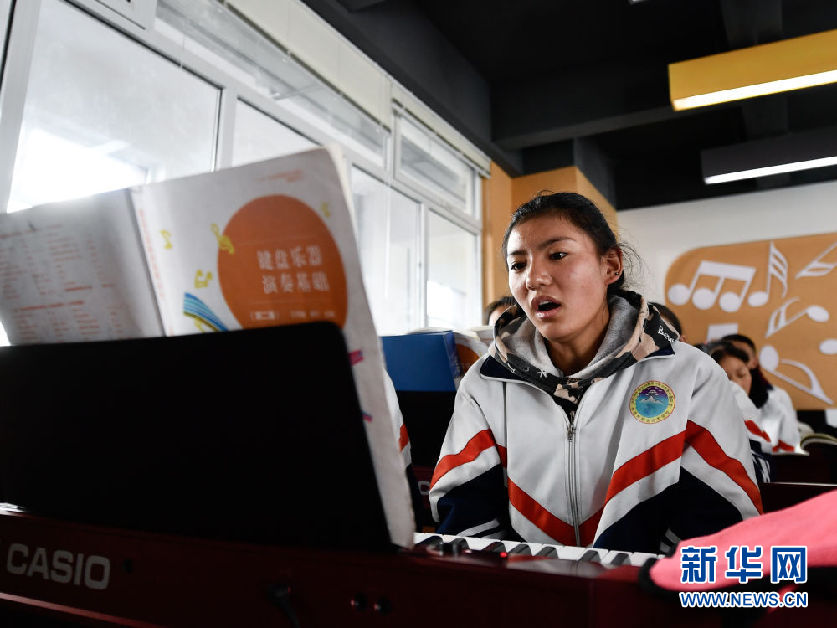 3月16日,在果洛藏族自治州職業(yè)技術(shù)學(xué)校,2020級(jí)學(xué)前教育專業(yè)學(xué)生楊央在上音樂(lè)課。新華社記者 張龍 攝