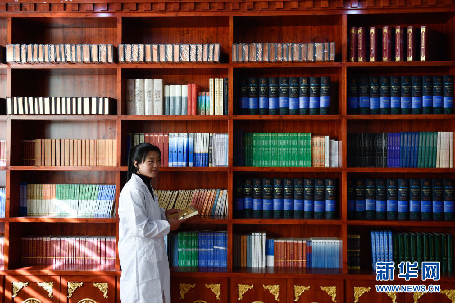 3月16日,在果洛藏族自治州職業(yè)技術(shù)學(xué)校,2020級(jí)藏醫(yī)醫(yī)療與藏藥專業(yè)學(xué)生德吉在借閱書(shū)籍。新華社記者 張龍 攝