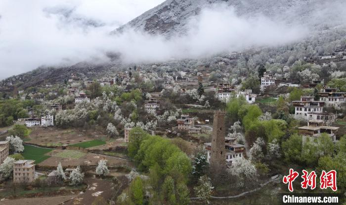 3月22日,素有“千碉之國(guó)”美譽(yù)的的四川甘孜藏族自治州丹巴縣雪后天晴,藏寨中大小形態(tài)各異的碉樓、涂抹成鮮艷的藏民居在白雪、梨花和綠樹(shù)掩映下構(gòu)成一幅獨(dú)特的藏家春色圖,一季梨花如雪的開(kāi)放,花如雪,雪似花,悠蕩在春風(fēng)里,一道絕美的風(fēng)景線讓四方游人陶醉。