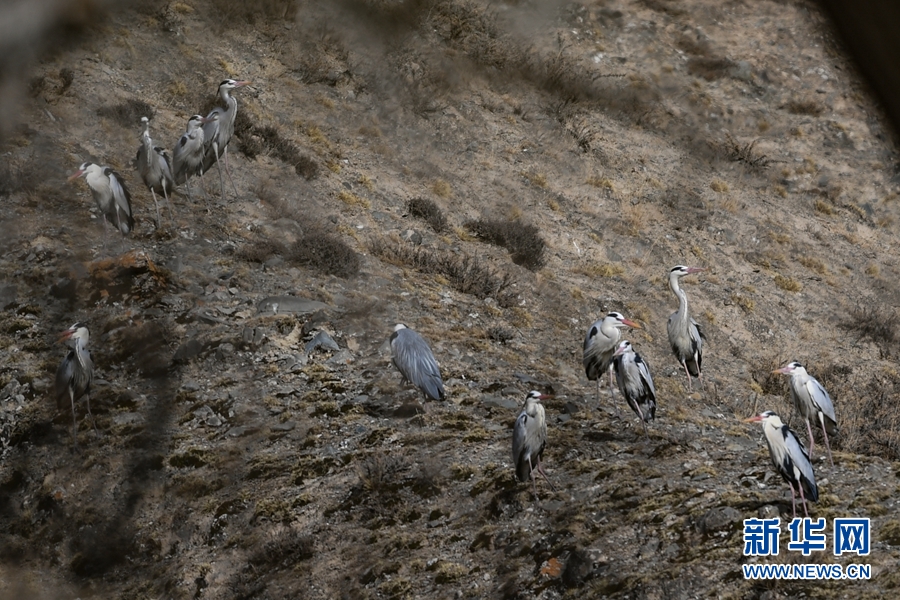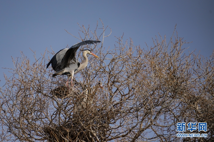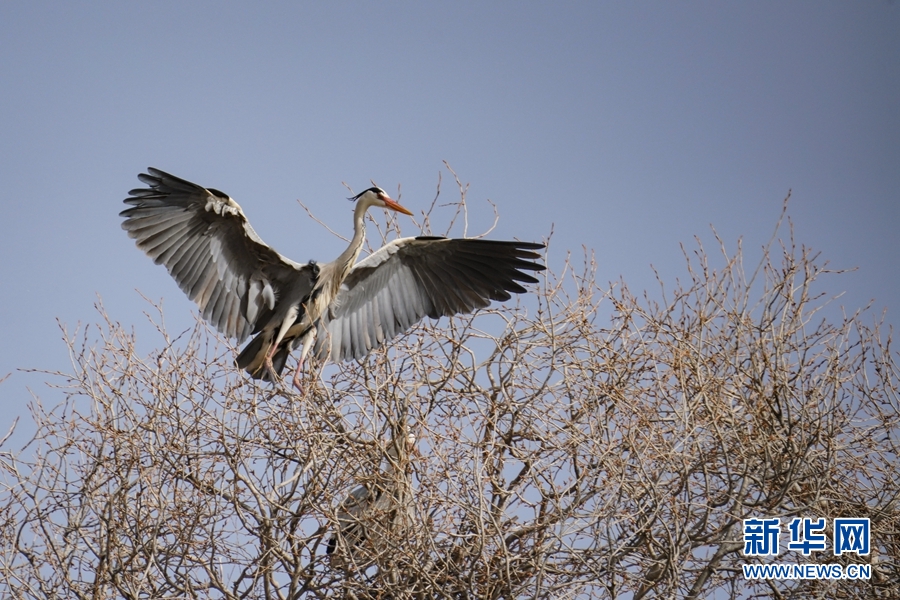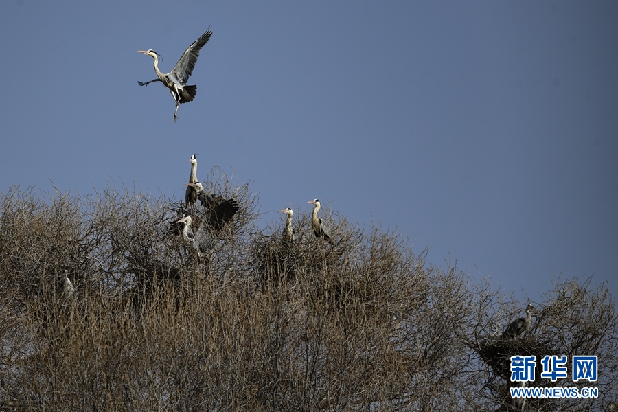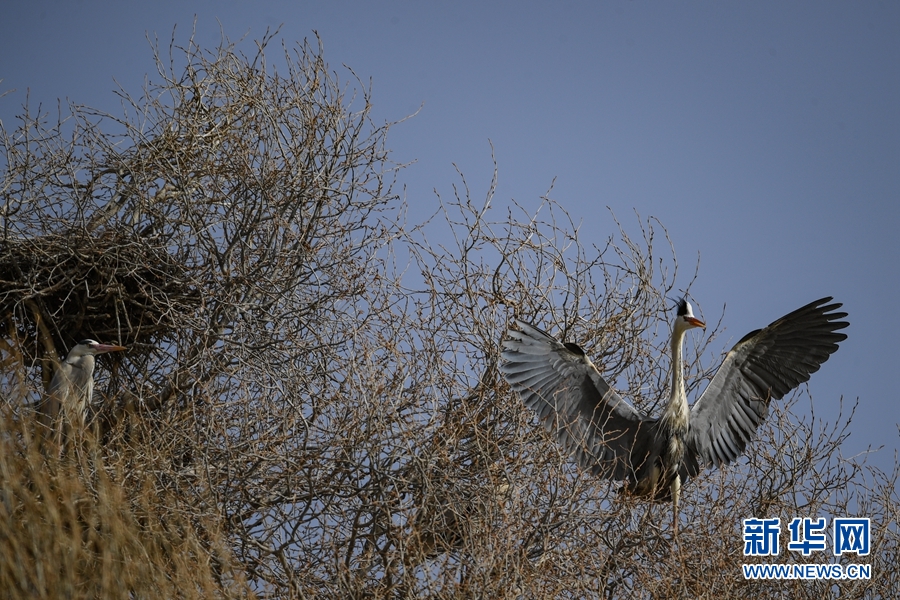 兩只蒼鷺來回飛舞忙碌建巢。新華網(wǎng) 卡婭梅朵 攝