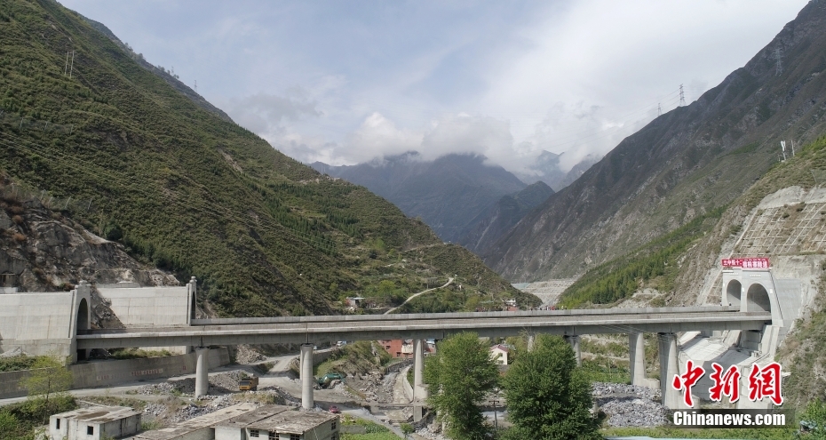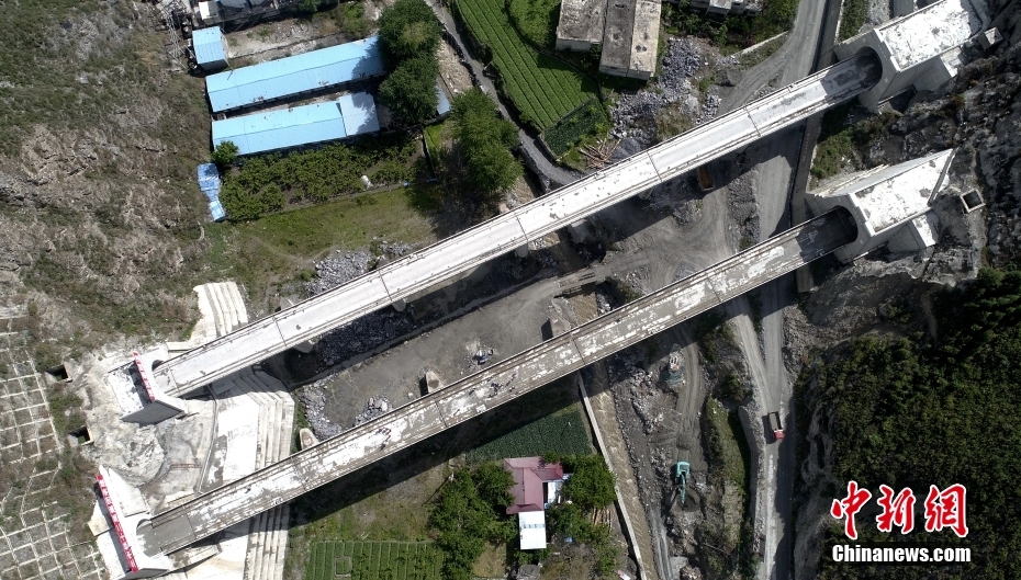 4月26日,四川茂縣,航拍成蘭鐵路榴桐寨大橋。中新社記者 劉忠俊 攝