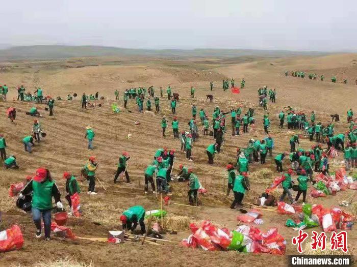 4月26日至27日,黃河沿岸沙化區(qū)植樹(shù)治沙活動(dòng)正在甘肅瑪曲展開(kāi)。楊旭明 攝