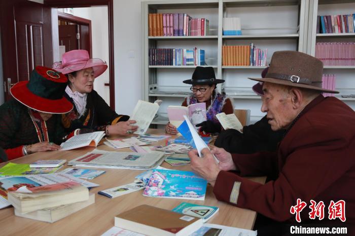 閱覽室內(nèi),三四位老人圍桌而坐,口中不停念著,“這是草原牧民口耳相傳的格薩爾詩篇,”德高說,隔壁房間的老人們正切磋藏棋、縫紉機(jī)前忙碌,“他們閑時編織門簾、口袋,放在‘愛心超市’展出、售賣,還把這種傳統(tǒng)手藝教給附近學(xué)校的小孩子?!?/p>