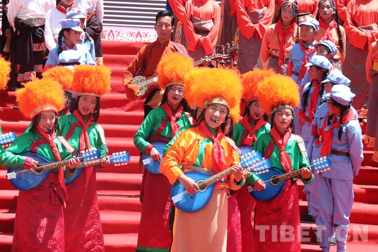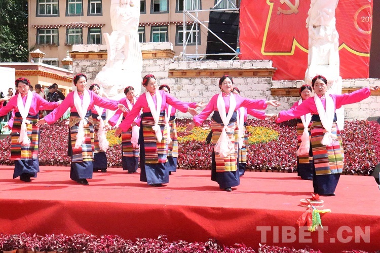 活動(dòng)現(xiàn)場(chǎng),黨旗國(guó)旗飄揚(yáng)、哈達(dá)傳情,在一片歡騰的海洋里,大家載歌載舞齊唱光輝歲月,放聲歌頌幸福美好生活,盡情抒發(fā)高城兒女的愛黨愛國(guó)情懷。歌曲《翻身農(nóng)奴把歌唱》《草原上升起不落的太陽(yáng)》,穿插吉祥老人頌詞和舞蹈。表達(dá)高原兒女在中國(guó)共產(chǎn)黨的領(lǐng)導(dǎo)下,翻身獲得解放,掌握了自己的命運(yùn)。短短幾十年的發(fā)展過程,涉藏州縣迎來騰飛,經(jīng)濟(jì)社會(huì)發(fā)生了翻天覆地的變化,與祖國(guó)同步實(shí)現(xiàn)全面小康。
