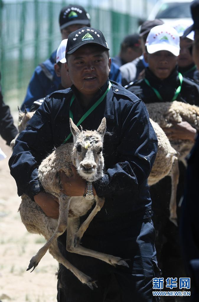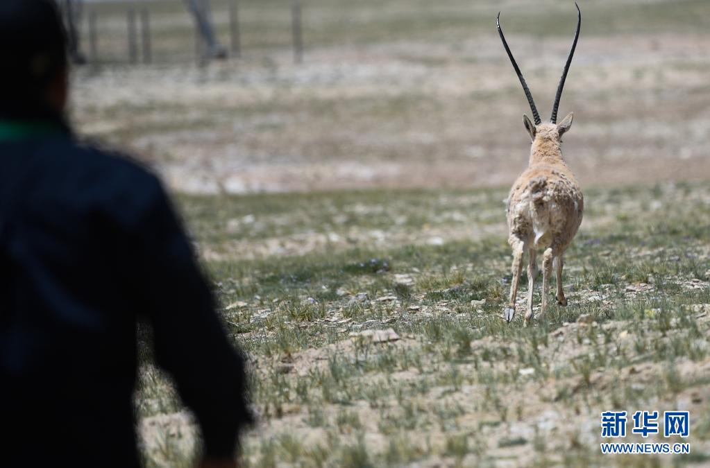 7月7日,在可可西里索南達杰保護站野生動物救助中心,一只藏羚羊被放歸大自然。當日,在可可西里索南達杰保護站野生動物救助中心,三公兩母共五只人工救助的藏羚羊被放歸大自然。新華社記者 張龍 攝