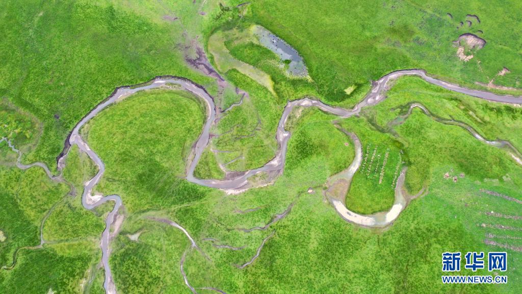 這是7月15日拍攝的瑪曲縣阿萬倉濕地(無人機(jī)照片)。新華社記者 馬莎 攝
