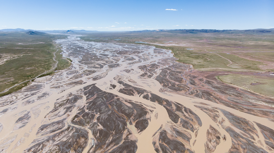 這是2019年8月9日拍攝到的位于青海省格爾木市唐古拉山鎮(zhèn)的長(zhǎng)江正源沱沱河的照片(無人機(jī)照片)。新華社記者 吳剛 攝