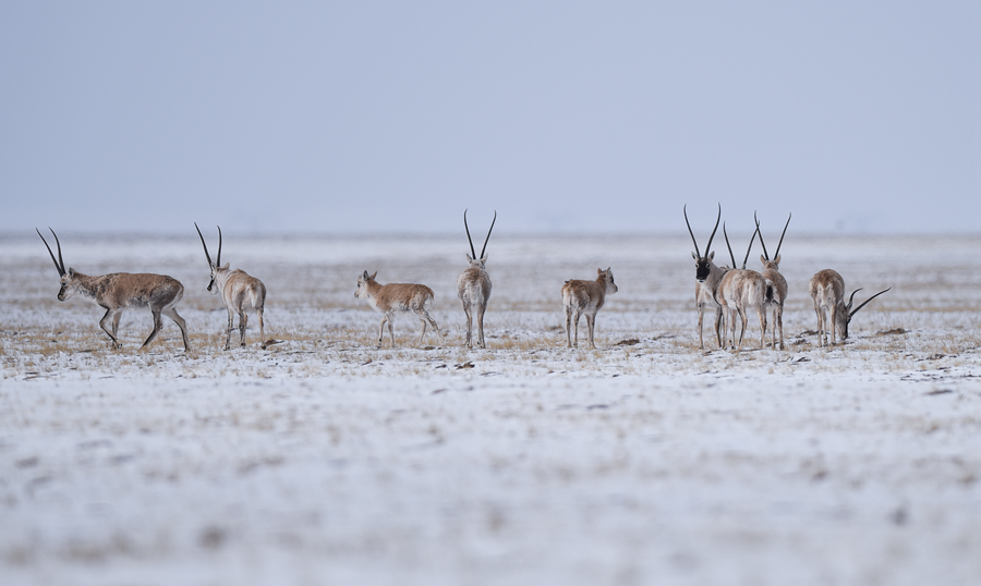 4月20日,藏羚羊在三江源可可西里地區(qū)活動(dòng)。新華社記者 吳剛 攝