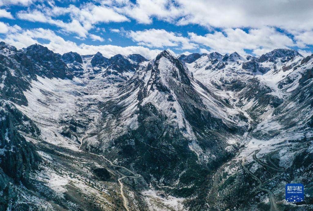 巴巴溝景區(qū)內(nèi)的雪山(10月23日攝,無人機照片)。新華社記者 王曦 攝