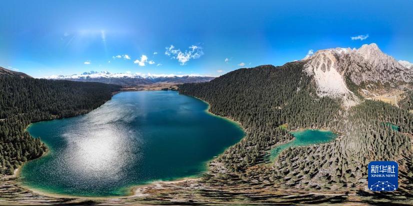 這是10月24日在四川甘孜巴塘縣措普溝景區(qū)內拍攝的措普湖(無人機全景照片)。新華社記者 胥冰潔 攝
