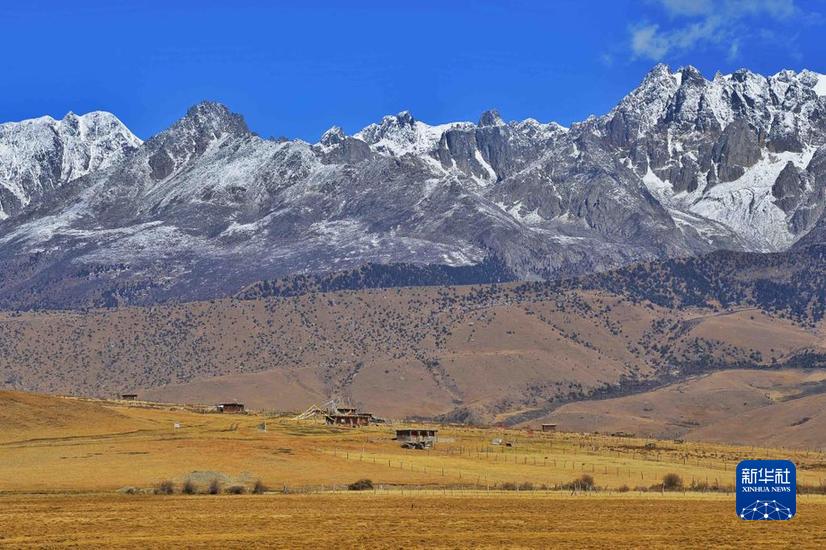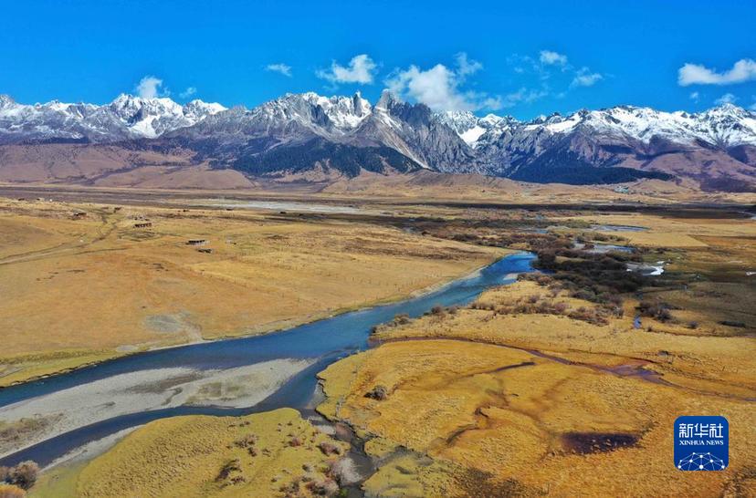 這是10月24日在措普溝景區(qū)內拍攝的章德草原和扎金甲博神山。新華社記者 劉坤 攝