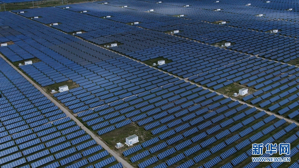 青海省海南藏族自治州共和縣塔拉灘光伏電站(無人機照片)。新華社記者 張龍 攝