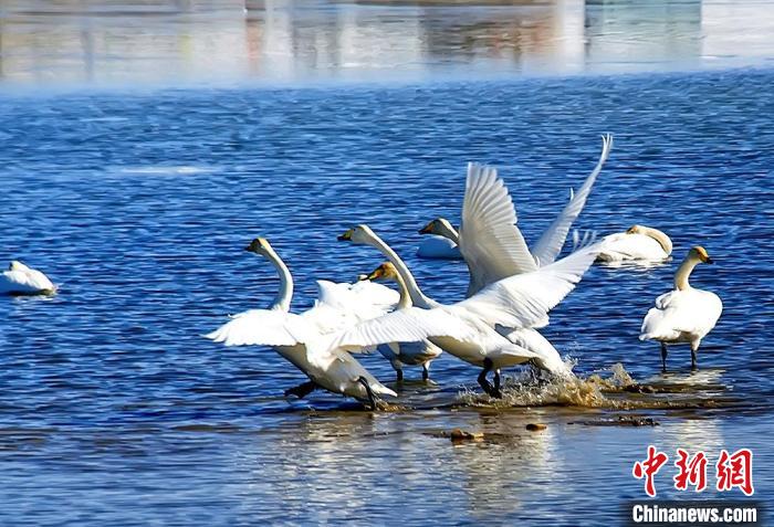 圖為察爾汗鹽湖濕地的大天鵝。格爾木市委宣傳部 供圖