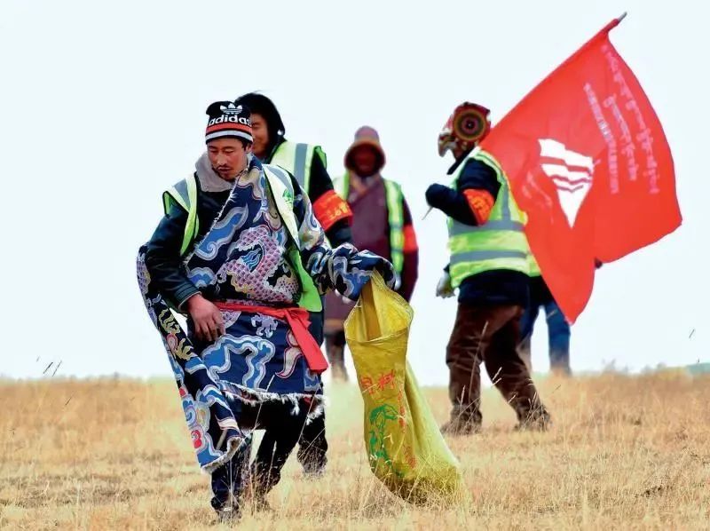 “‘薩’(藏語)是雪豹,‘鬧’(藏語)是巖羊;放牧是巡護,轉湖就監(jiān)測;見到動物要記下……”索南文毛邊撿拾垃圾,邊念叨從生態(tài)管護員培訓班上學到的口訣。