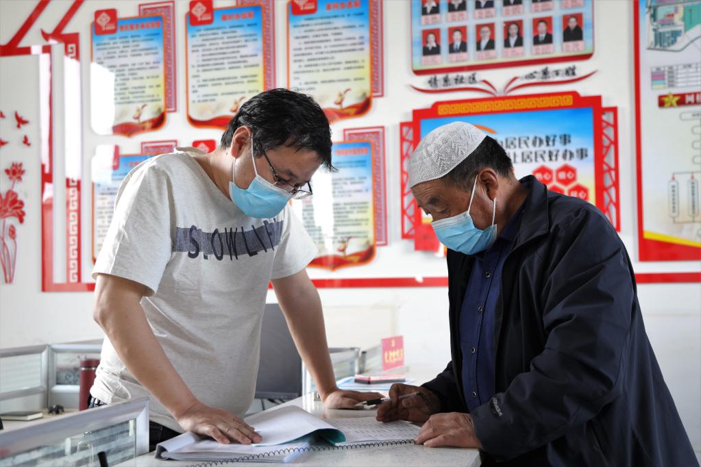 3月9日,在社區(qū)“石榴籽家園”,居民馬應(yīng)洪(右一)在向工作人員咨詢(xún)醫(yī)保相關(guān)政策。新華社記者 趙玉和 攝