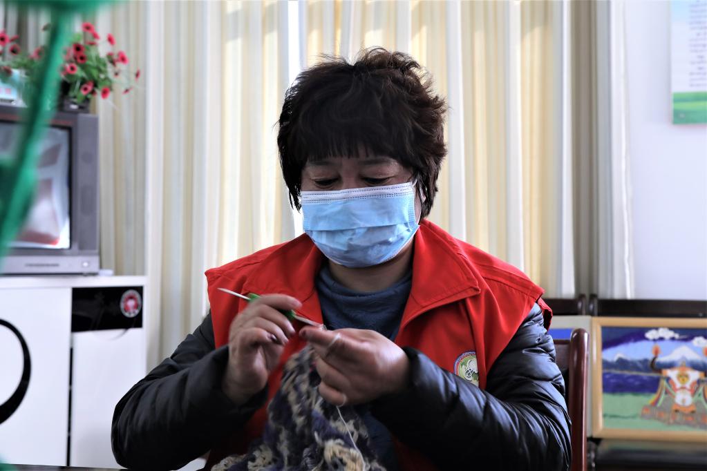 在社區(qū)“石榴籽家園”里,各民族婦女利用閑暇時(shí)間學(xué)習(xí)鉤織、掐絲唐卡、十字繡等技藝。藏族婦女茍曉紅說(shuō):“我們制作的抱枕、坐墊、裝飾畫(huà)等手工藝品在線上線下銷(xiāo)售,讓我們?cè)诩议T(mén)口掙到了錢(qián)?!?/p>