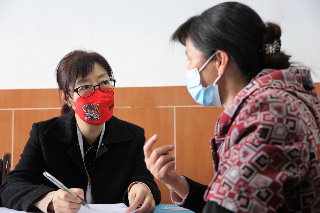 3月9日,評(píng)估機(jī)構(gòu)工作人員袁國(guó)芬(左)在社區(qū)“石榴籽家園”開(kāi)展老年人能力綜合評(píng)估工作。新華社記者 趙玉和 攝