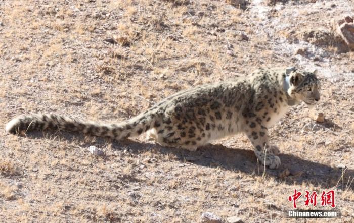 資料圖為佩戴衛(wèi)星追蹤項(xiàng)圈的雪豹被放歸。中新社發(fā) 祁連山國家公園青海省管理局供圖