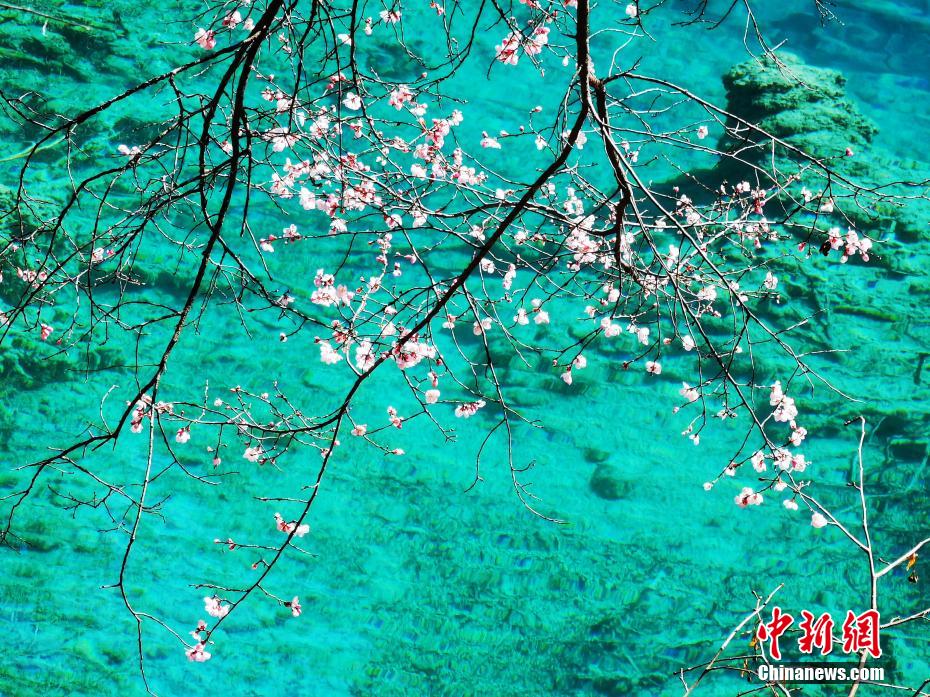 3月的九寨溝春回大地,暖陽怡人,遍布河谷、湖畔、山腰的九寨扁桃花迎風(fēng)綻放,花期正當(dāng)時(shí)。梁楓 攝