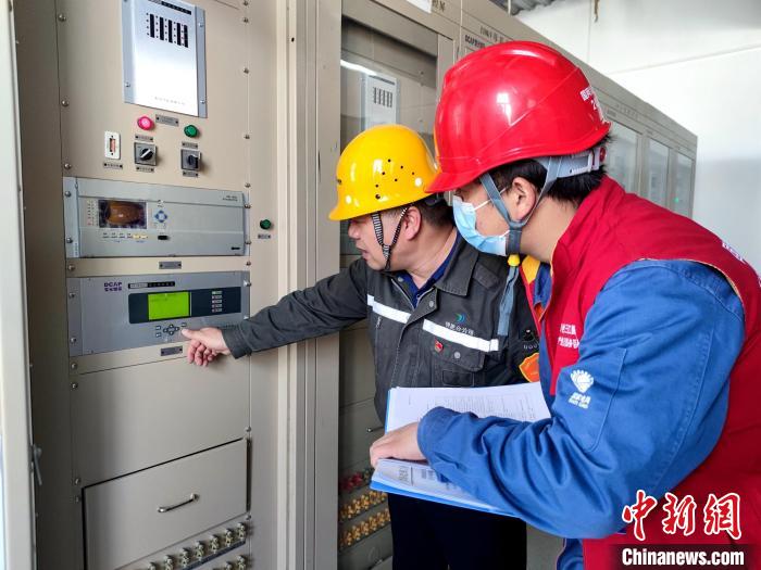圖為國網(wǎng)青海電力三江源(海西營銷)共產(chǎn)黨員服務(wù)隊(duì)隊(duì)員在鹽湖化工鉀肥公司生產(chǎn)車間檢查設(shè)備。 國網(wǎng)海西供電公司供圖
