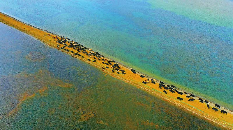甘孜州石渠縣太陽湖,牧民在放牧點放養(yǎng)牦牛。 根呷 攝